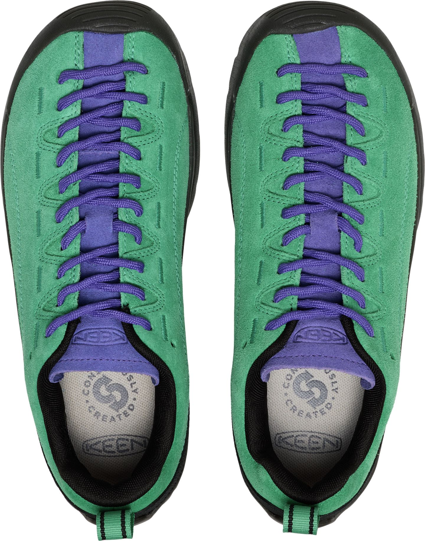 Moteriški „Jasper Suede Sneaker“ sportbačiai su spalvotais raišteliais. „KEEN“ sukūrė batus su kuriais būtų patogu keliauti tiek į kalnus, tiek į miestą. Sportbačių padas guminis, minkštas. Prie avalynės įeina du raištelių komplektai, kurie leidžia keisti išvaizdą.